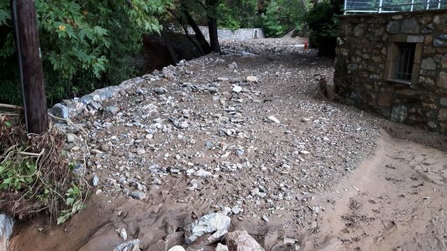 Μαζί με τα νερά το οδόστρωμα γέμισε με λάσπες, χώματα και σε αρκετά σημεία ο δρόμος έγινε αδιάβατος.